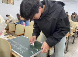 二、强化学生师范微技能。指导老师组织了英语歌曲学唱、简笔画训练、三笔字训练、英语语音过关、微视频制作等活动,加快了师范生教学综合能力的培养。学生们积极参与,踊跃展示,展现了良好的英语教学基本功。