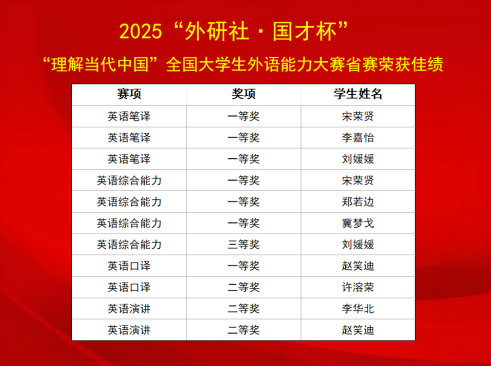 此次优异成绩是我校人才培养成果的一次生动展现,充分体现了学校在培养具备家国情怀、全球视野、扎实外语能力与跨文化沟通素养的高素质人才方面取得的显著成效。英国上市公司365将以此为契机,持续深化教育教学改革,不断优化教学方法,着力培养更多具备国际视野与竞争力的复合型外语人才,为我国外语教育事业的蓬勃发展贡献更大力量。