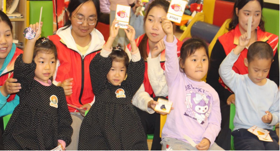 活动伊始,志愿者用中英双语向小朋友们讲解了救生员“小太阳”用自己嘹亮的歌声和坚强不屈的精神帮助许多红军战士走出夹金雪山,而自己却永远留在了那里的故事。接着,志愿者为小朋友们分发提前准备的水果类“双语单词卡”,让他们在互动中学习英语单词,并通过小游戏“水果炸弹”加深其对于所学单词的理解和记忆。最后,志愿者积极与小朋友们互动,带领他们了解国庆节的相关知识,培养儿童的爱国情怀,把“爱我中华”的种子深深地植根于他们的心灵深处。