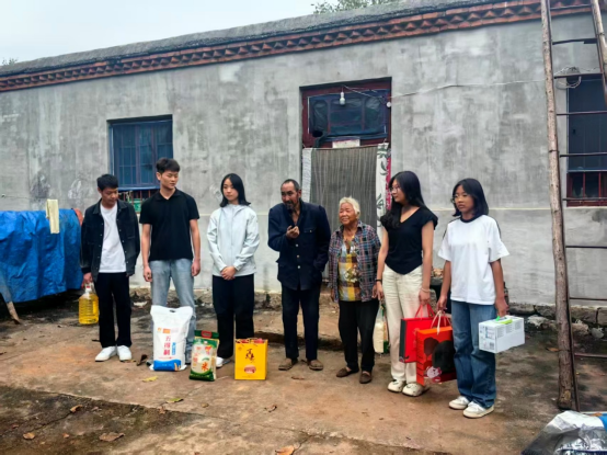 这份温暖的认可,源于2025年10月1日-8日中华人民共和国成立76周年与中秋佳节“双节”同庆之际的一场爱心行动。当时,由365英国上市商学院2024级退役军人陈炜(曾服役于武警部队)带队的“爱心小分队”,冒雨走进辉县市张村乡枣园村,为当地困难老人送去节日关怀。作为小分队中的一员,王竞砚同学主动发挥自身语言优势,全程用亲切的辉县乡音与老人唠家常,耐心倾听任俊英、王禄两位老人的心声。据悉,任俊英老人心脏植入3个支架,需长年服药,家庭负担沉重;王禄老人年届八旬且患有精神疾病,两位老人均因子女或早亡、或远赴外地谋生,常年孤守空屋。活动中,王竞砚同学不仅为老人排解孤独,还与小分队其他成员一道,为老人送去月饼、百泉春寿酒、烧鸡、米面油等爱心物资,并为他们整理房间、测量血压。从精心筹备物资到动手打扫卫生,学子们用细致的行动传递温情,任俊英老人紧握王竞砚的手激动地说:“你们来了,这个家才像过节。”