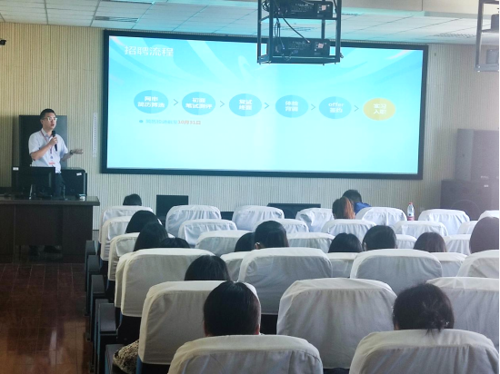 首先,李雨宸总经理向学生详细介绍了公司发展历程、总部及子公司的分布城市、公司工作环境、例行活动、薪酬福利结构、晋升路径、招聘流程等内容。其次,李雨宸总经理表示本次针对外院学生招聘的岗位是消费金融定向生,同时也向学生说明了实习相关的要求、大致流程和待遇问题。最后,由外院2023届优秀毕业生,现已就职于宁银消金的张婷同学分享了自己的工作体验及对即将步入职场的学弟学妹们的建议。